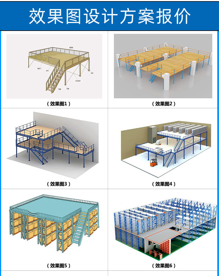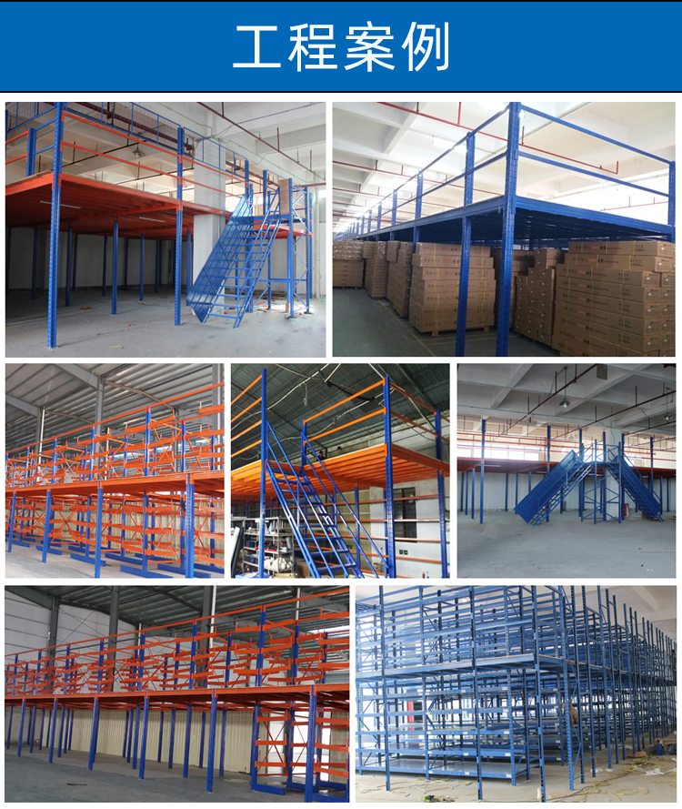 5、下层是货架形式,上层可以是平台也可以是货架的结构。底层货架既可以存储物料又是楼面的支撑,极具灵活性。