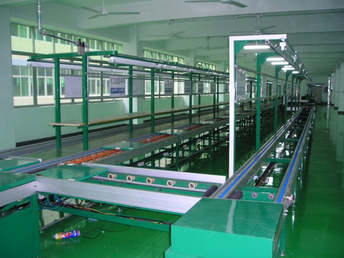 流水线又称为装配线,一种工业上的生产方式,指每一个生产单位只专注处理某一个片段的工作,以提高工作效率及产量;按照流水线的输送方式大体可以分为:皮带流水装配线、板链线、倍速链、插件线、网带线、悬挂线及滚筒流水线这七类流水线。一般包括牵引件、承载构件、驱动装置、涨紧装置、改向装置和支承件等组成。流水线可扩展性高,可按需求设计输送量,输送速度,装配工位,辅助部件(包括快速接头、风扇,电灯,插座,工艺看板,置物台,24V电源,风批等,因此广受企业欢迎;流水线是人和机器的有效组合,最充分体现设备的灵活性,它将输送系统、随行夹具和在线专机、检测设备有机的组合,以满足多品种产品的输送要求。输送线的传输方式有同步传输的/(强制式),也可以是非同步传输/(柔性式),根据配置的选择,可以实现装配和输送的要求。输送线在企业的批量生产中不可或缺。